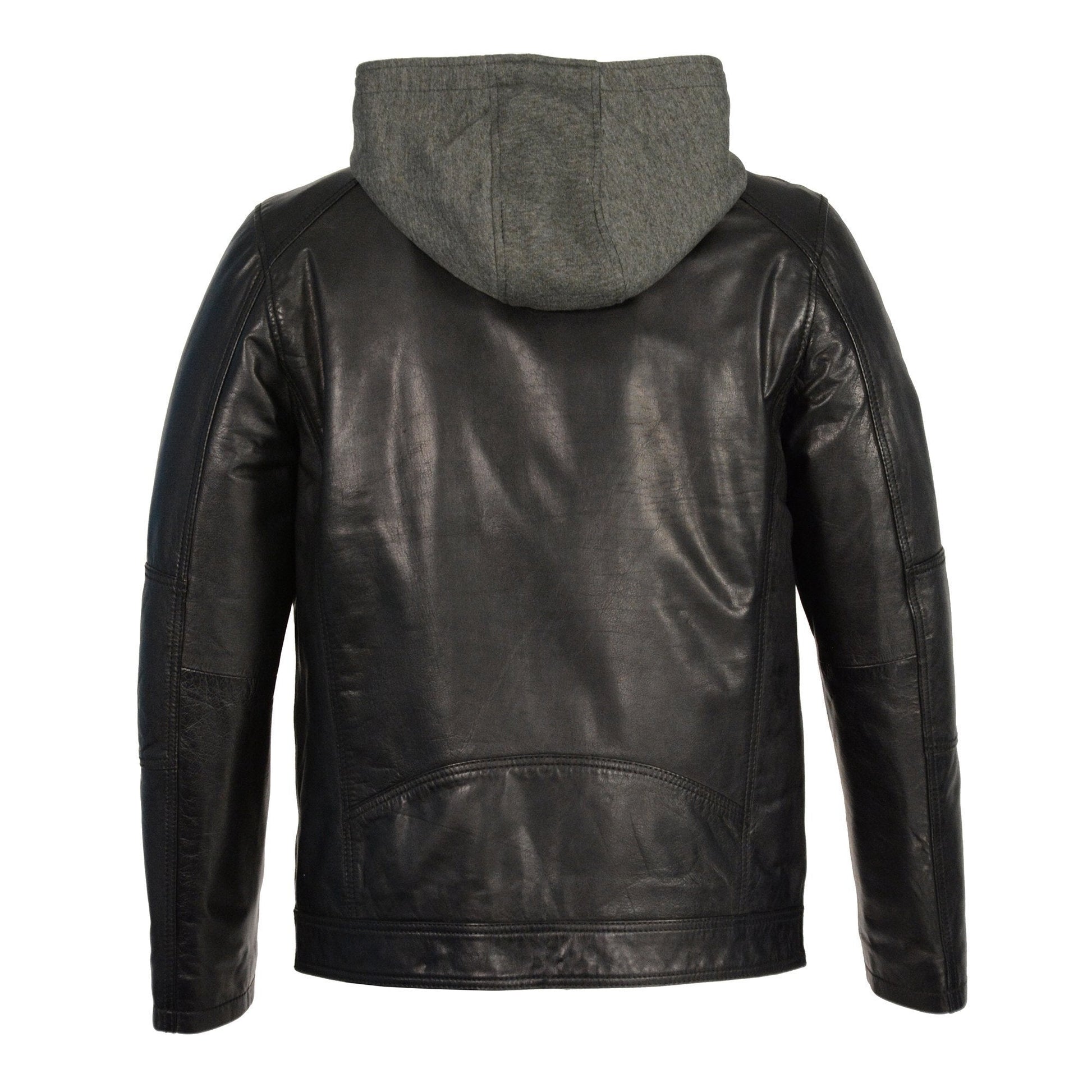 Milwaukee Leather SFM1850 Men's Black Snap Collar Motorcycle Style Fashion Casual Leather Jacket with Removable Hoodie