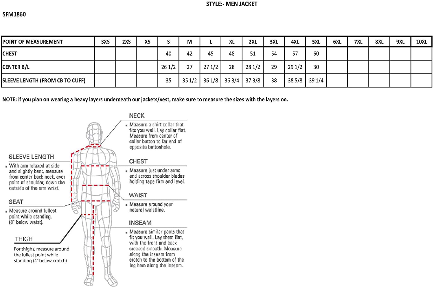 - Front Zipper Closure with Stand Up Snap Button Collar