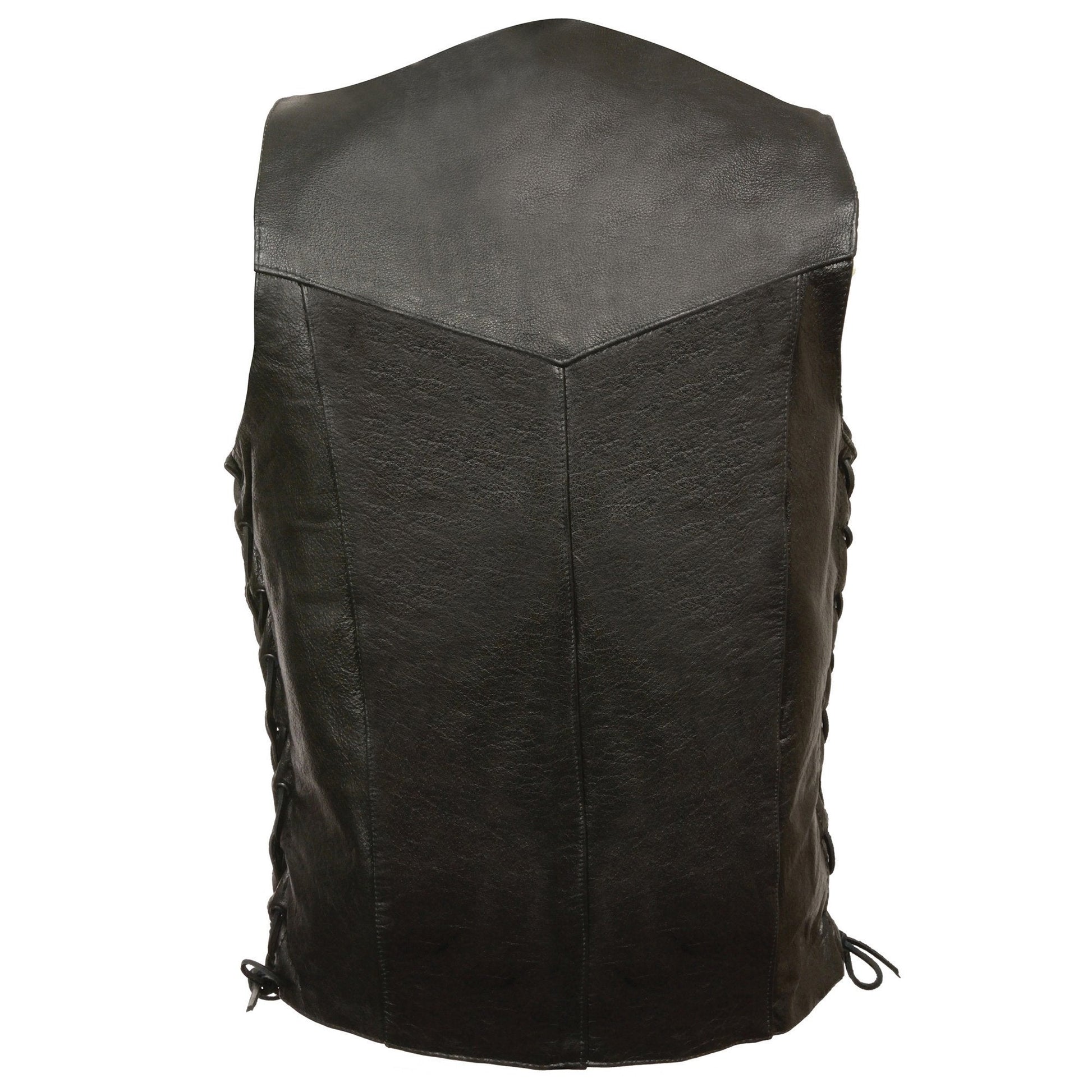 Milwaukee Leather SH1315TALL Men's Black Leather Classic V-Neck Side Lace Motorcycle Rider Vest w/ Front Snap Closure