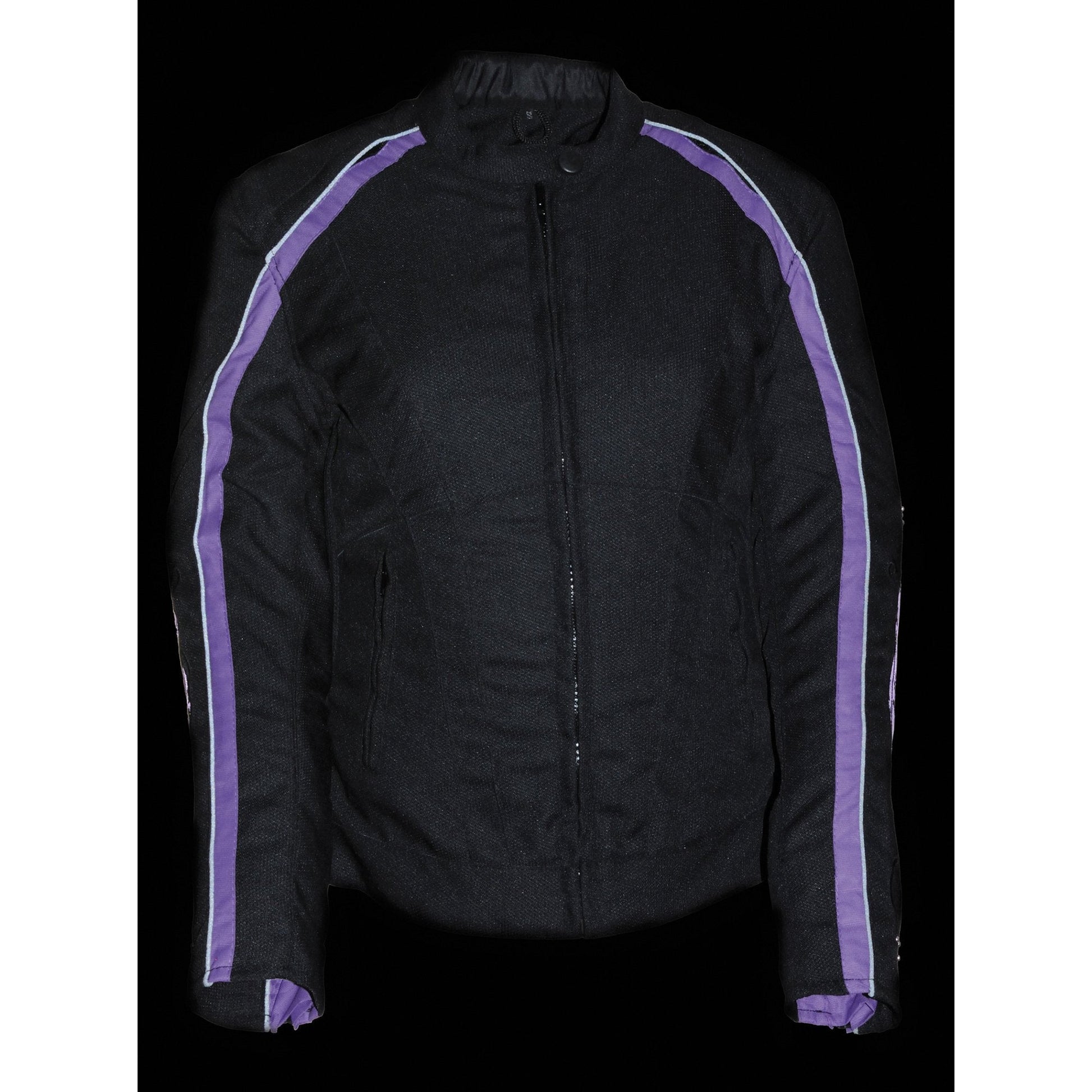 Milwaukee Leather SH1954 Women's Black and Purple Textile Jacket with Stud and Wings Detailing