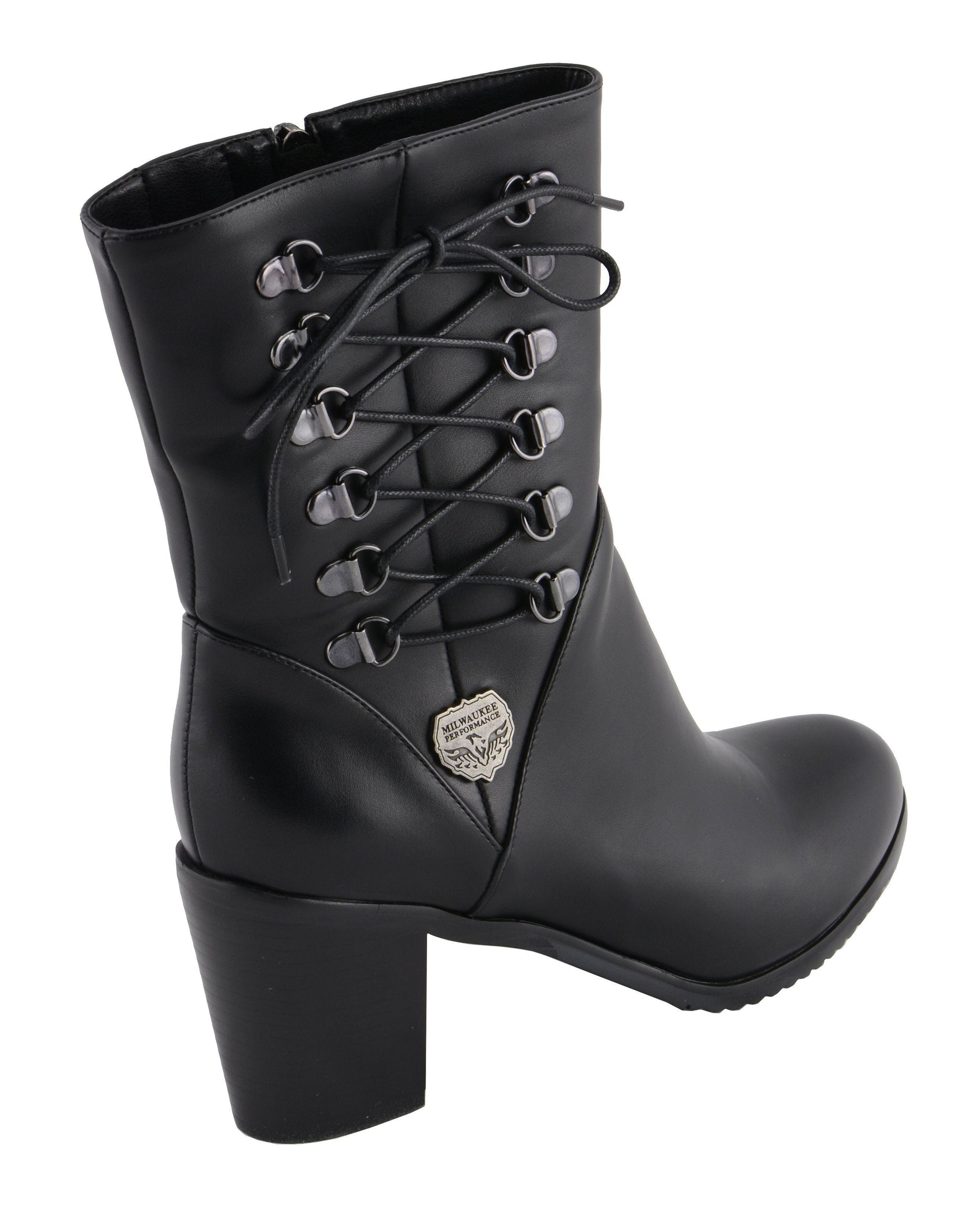 Milwaukee Leather Women's Black Lace-Side Fashion Motorcycle Riding Boots MBL9436