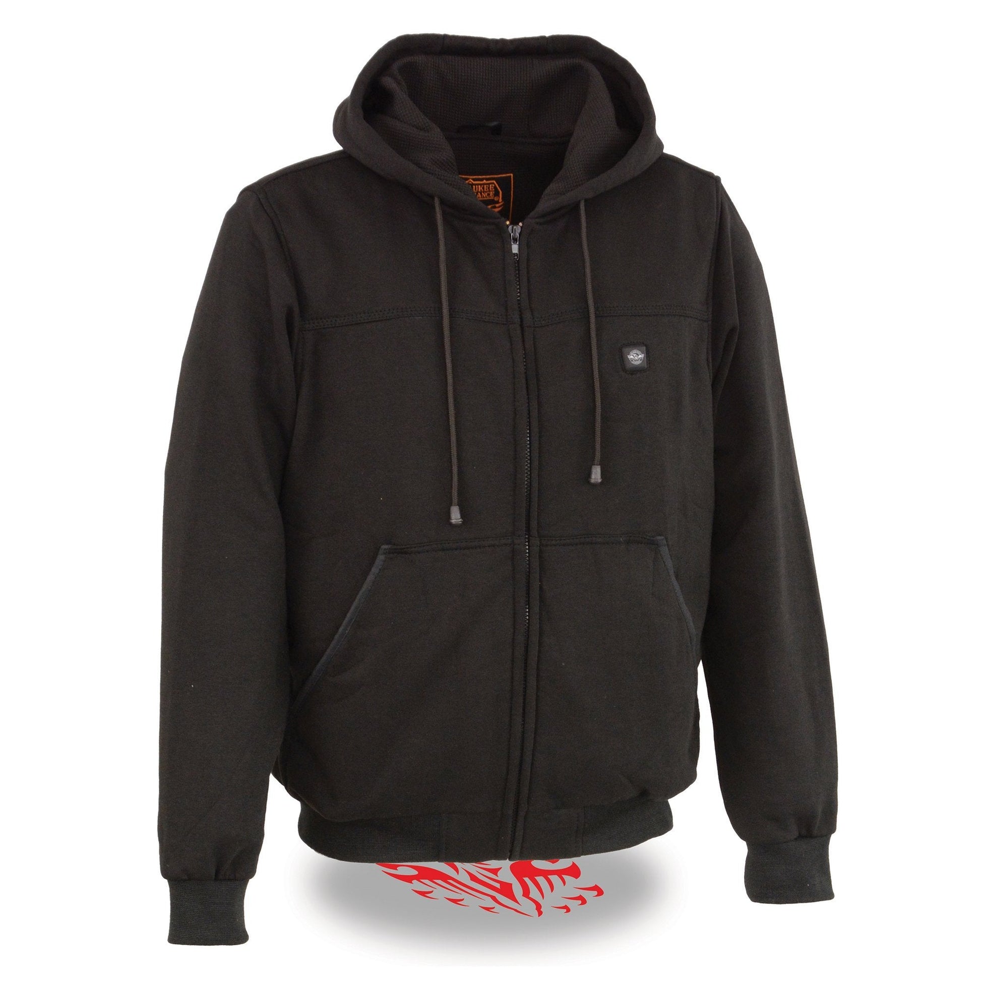 Nexgen Heat MPM1713SET Men's Black 'Fiery' Heated Hoodies - Front Zipper Textile Heated Jacket for Winter w/Battery Pack