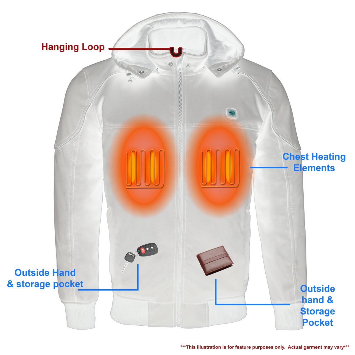 Nexgen Heat MPM1761SET Men’s Black 'Heated' Soft Shell Racing Style Motorcycle Heated Jacket, powered by a Rechargeable 10000mAh Battery Pack Included with Purchase