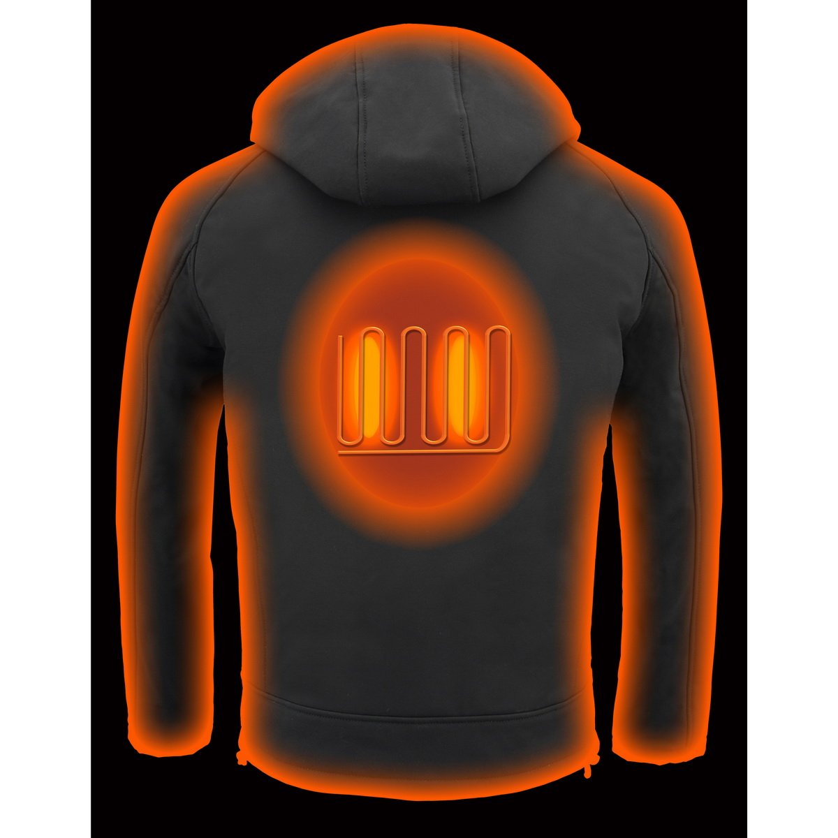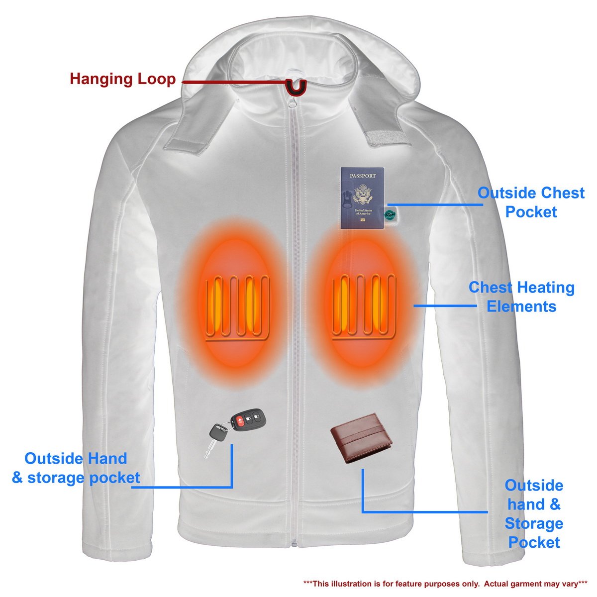 Nexgen Heat MPM1767SET Men's Black 'Heated' Soft Shell Hooded Zipper Front Jacket with Detachable Hood Powered by a Rechargeable 10000mAh Battery Pack Included with Purchase
