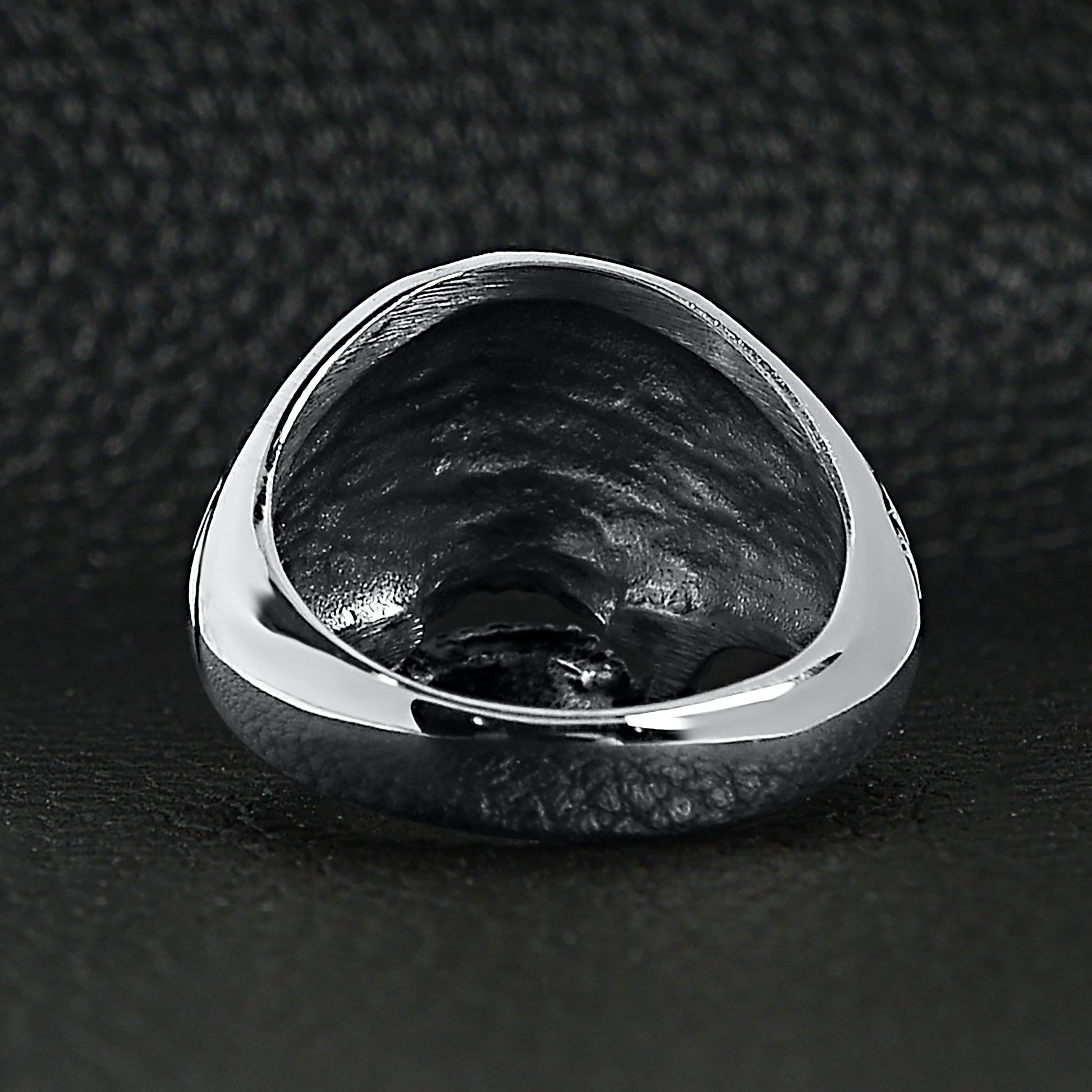 The Polished Filigree Skull Ring from our Bones Collection is custom molded and cast with a premium blend of surgical stainless steel that offers durability, even after exhaustive every day wear. Combined with a clean polished finish and detailed accents, the Stainless Steel polished filigree skull ring works great as a bold statement ring that can be worn in water or while you sweat without worry.
