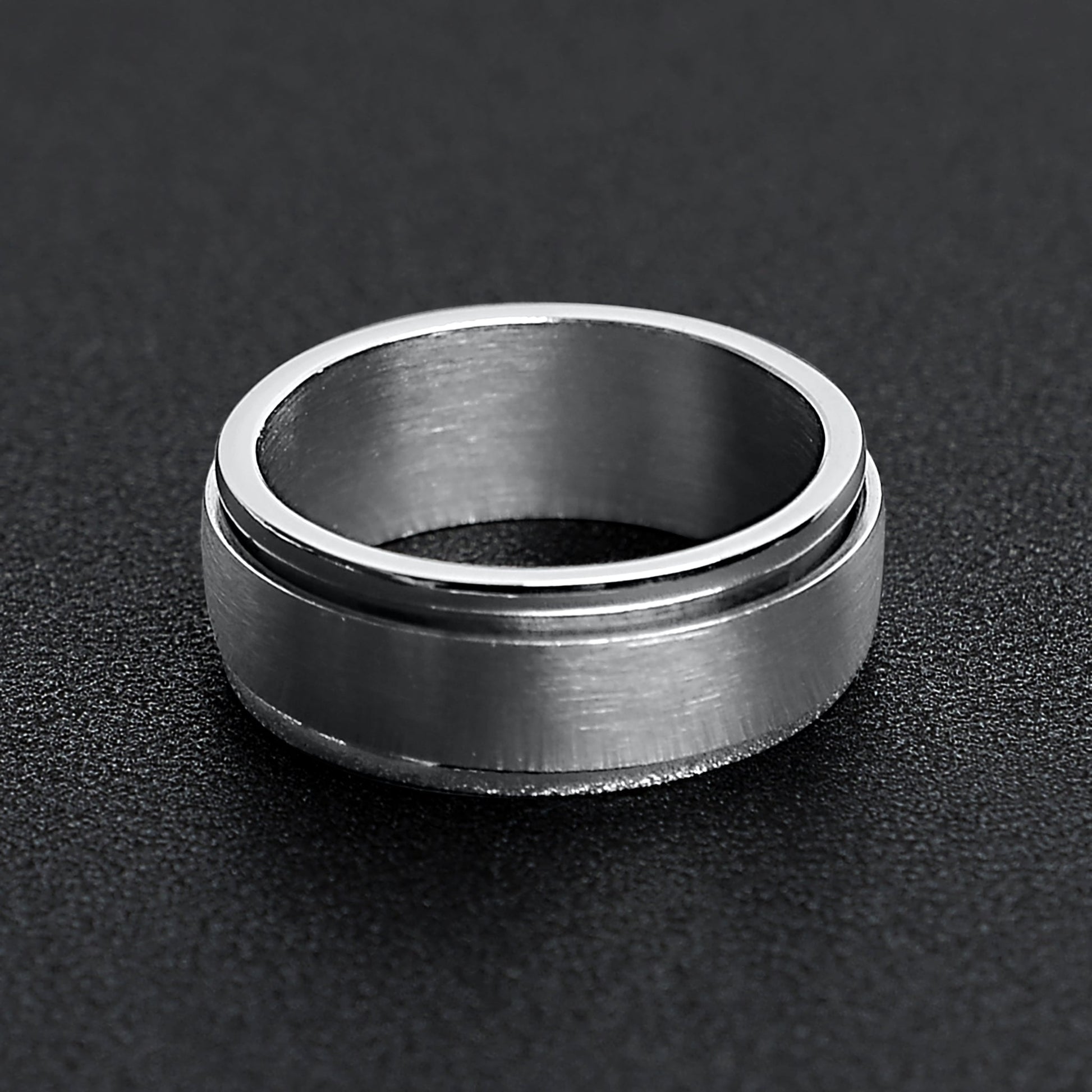 The Polished Stainless Steel Spinner Ring is more than just a ring. Crafted with a polished stainless steel inner layer and polished stainless steel top layer that spins a full 360°, this ring provides entertainment while it also helps to relieve stress. The Polished Stainless Steel Spinner Ring is made with surgical stainless steel that offers enhanced durability, even after everyday wear.