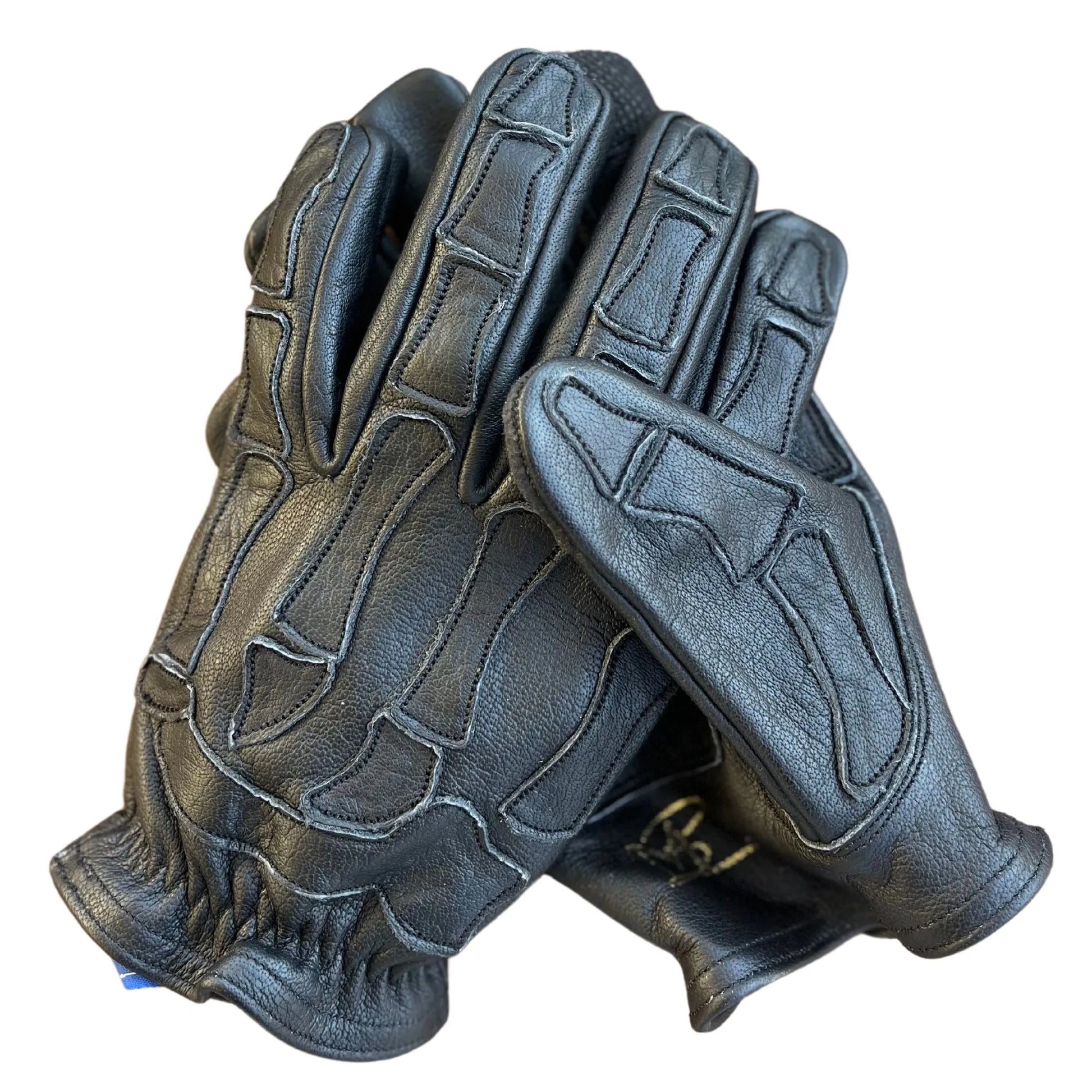 Black on Black Water Buffalo Skelton Motorcycle Glove