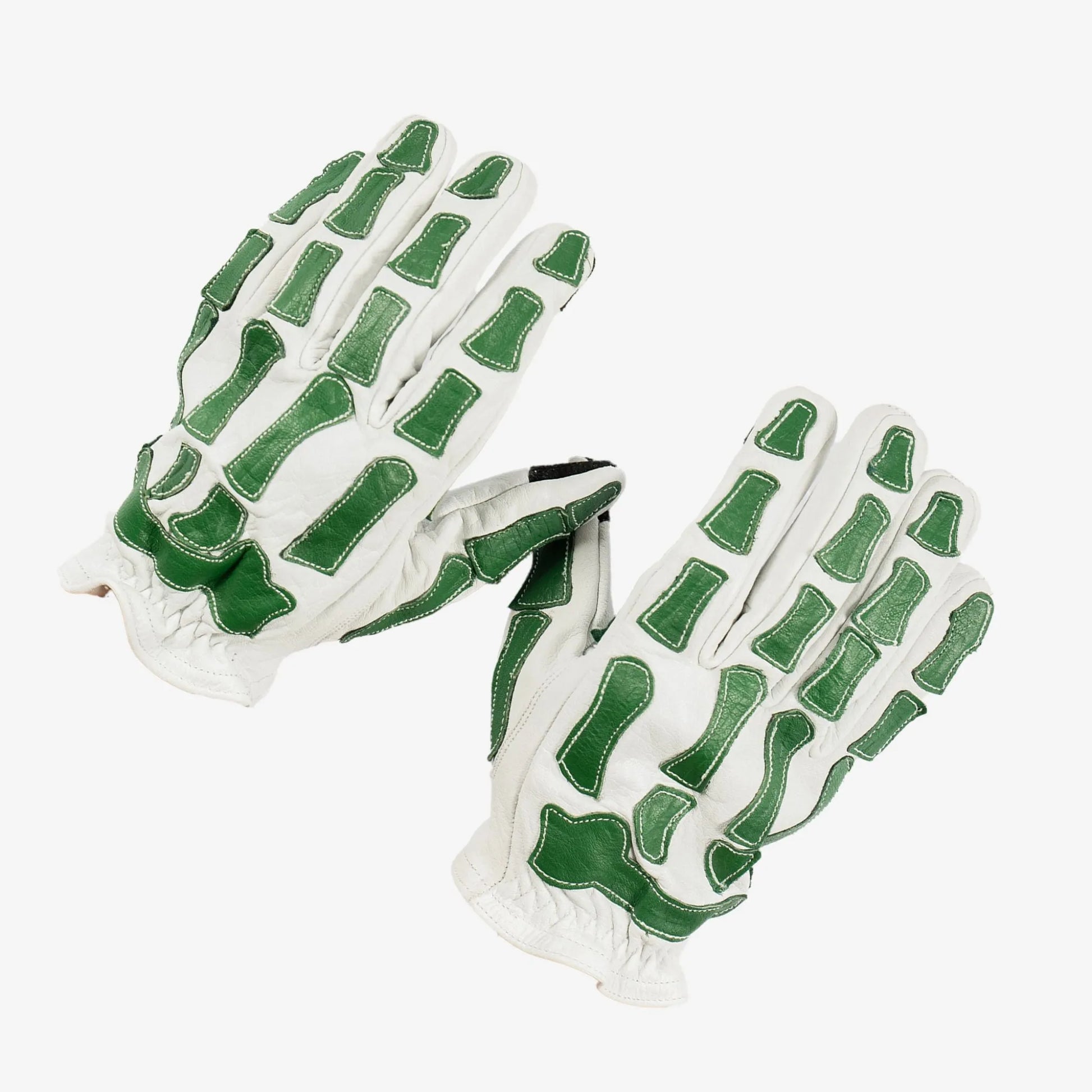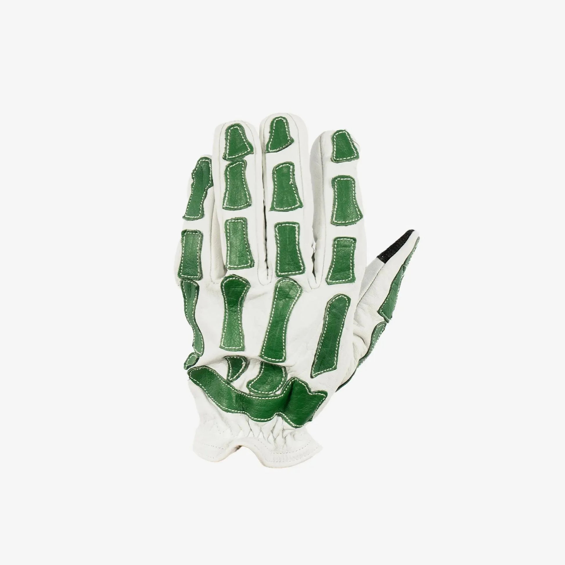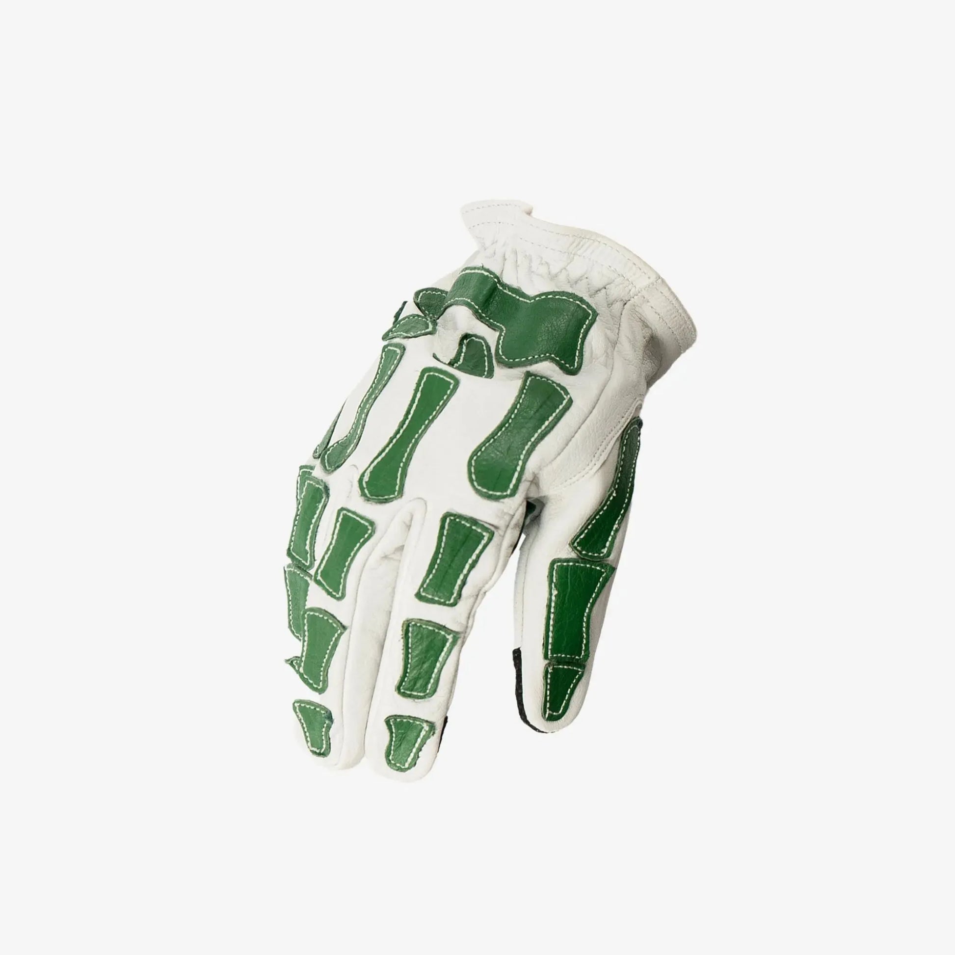 Skeleton Leather Motorcycle Glove - White & Green