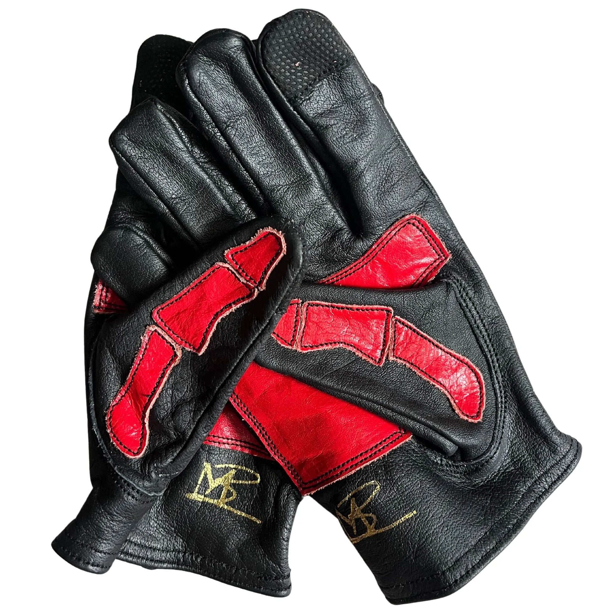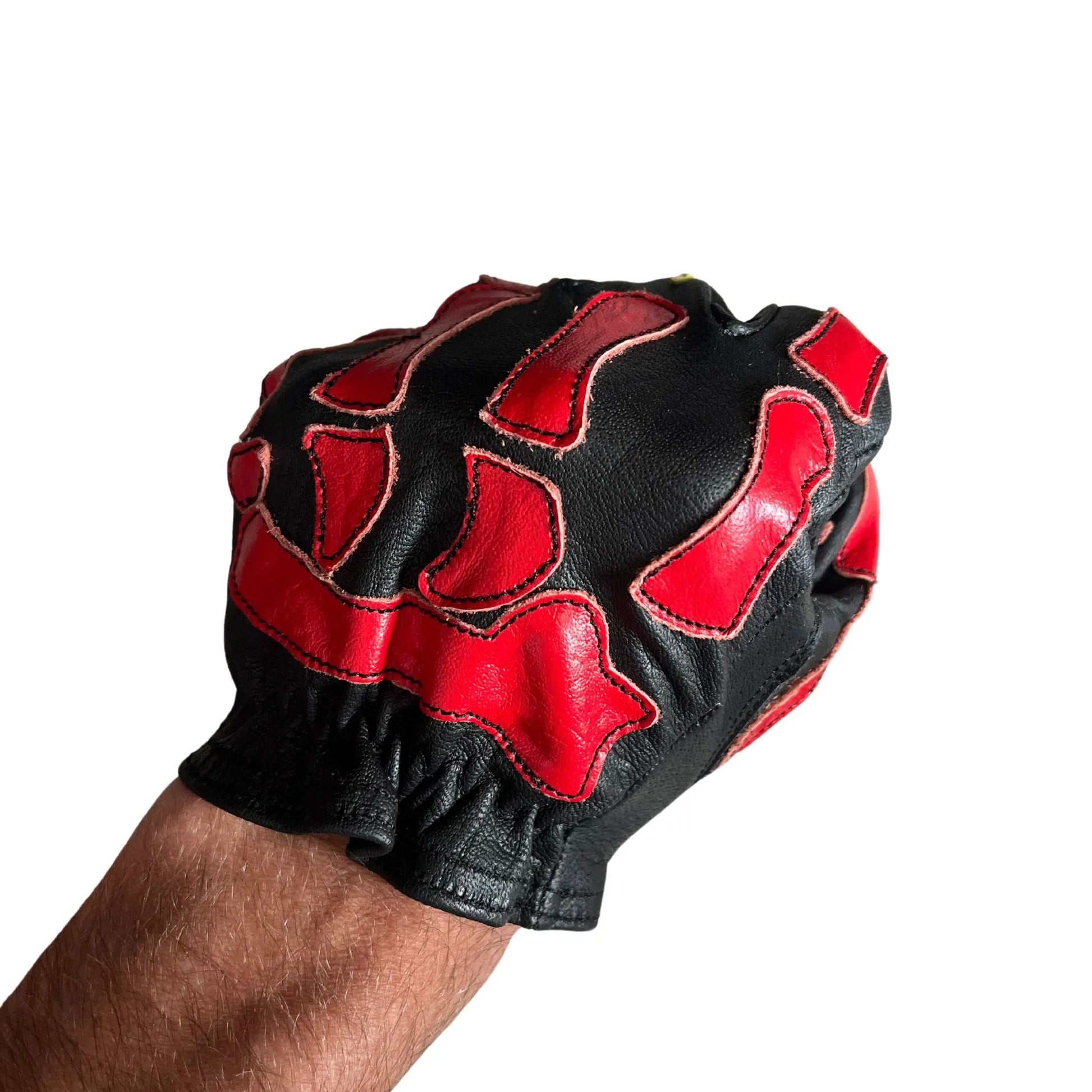 Black & Red Water Buffalo Skelton Motorcycle Glove