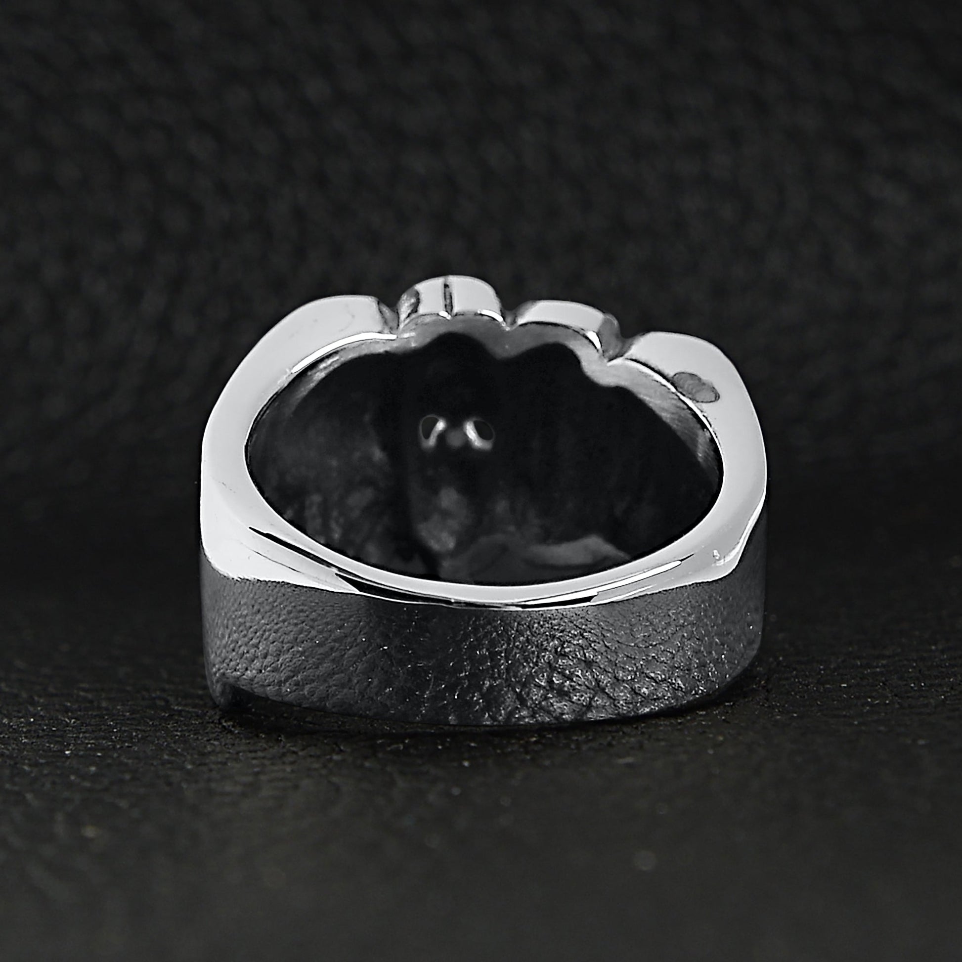 This stainless steel ring is one of our most popular options in the Biker Ring Collection and looks great when you wear it alongside other rings on your hand!