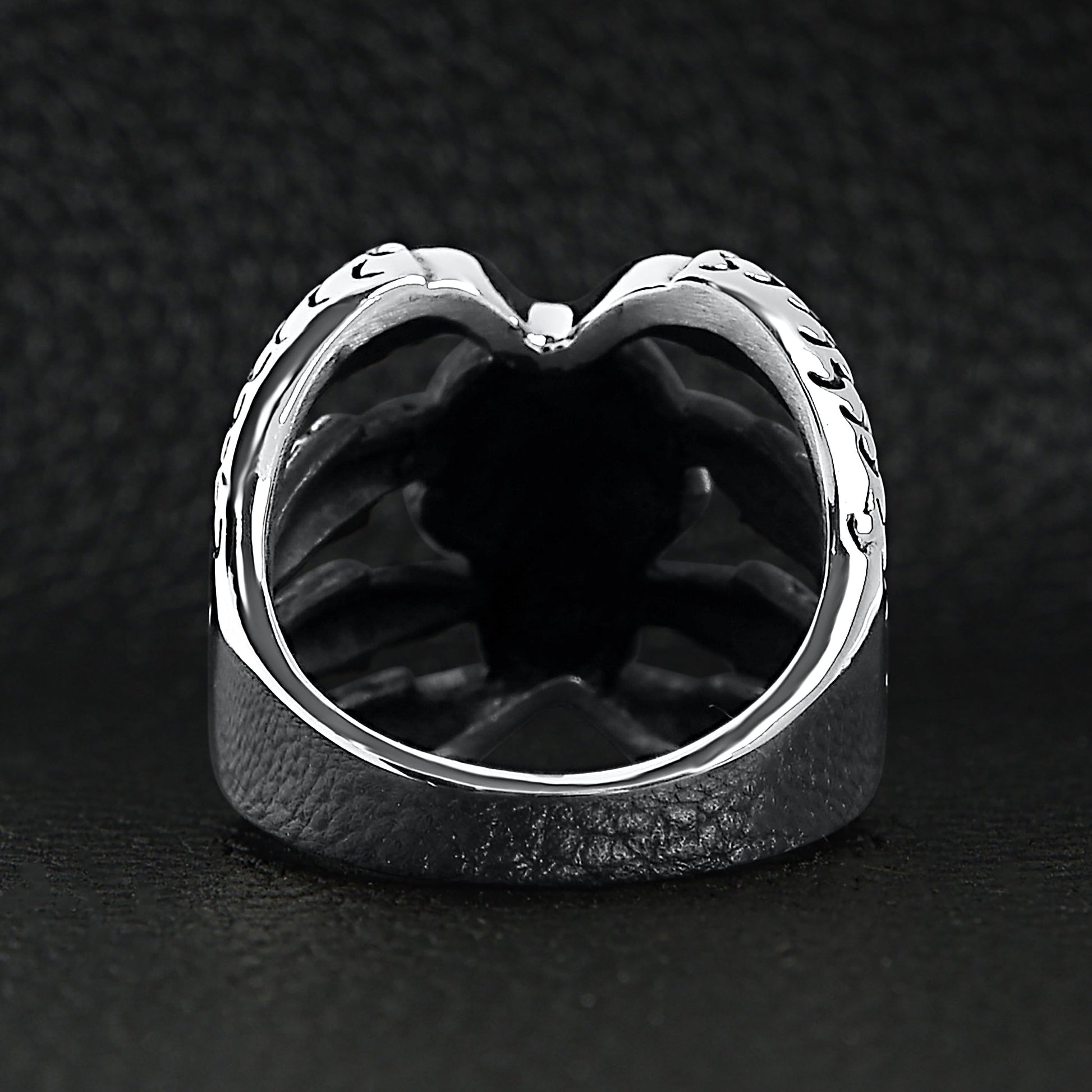 The Stainless Steel Dragon Claws Holding Red CZ Eyed Skull Ring from our Bones Collection is custom molded and cast with a premium blend of surgical stainless steel that offers enhanced durability, even after exhaustive wear. Combined with a clean polished finish, the Stainless Steel Dragon Claws Holding Red CZ Eyed Skull Ring works great as an everyday statement ring that can be worn in water or while you sweat without worry.