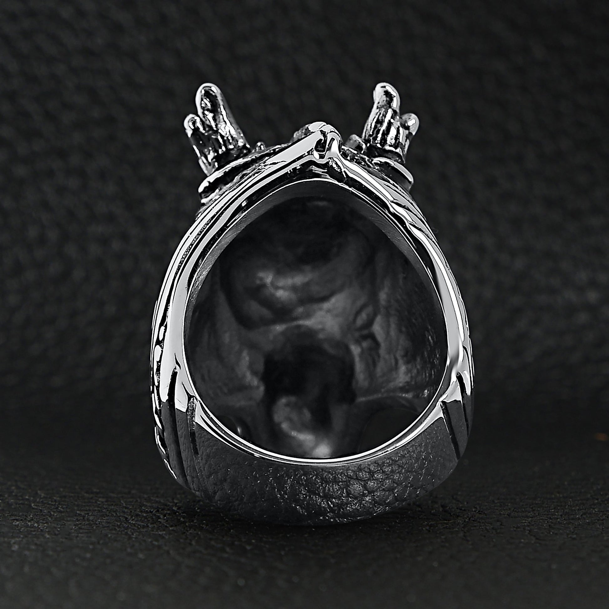 The Eastern Horned Dragon Head Ring from our Beast Collection is custom molded and cast with a premium blend of surgical stainless steel that offers enhanced durability, even after exhaustive wear. Combined with a clean polished finish, the stainless steel Eastern Horned Dragon Head Ring works great as an everyday statement ring that can be worn in water or while you sweat without worry.