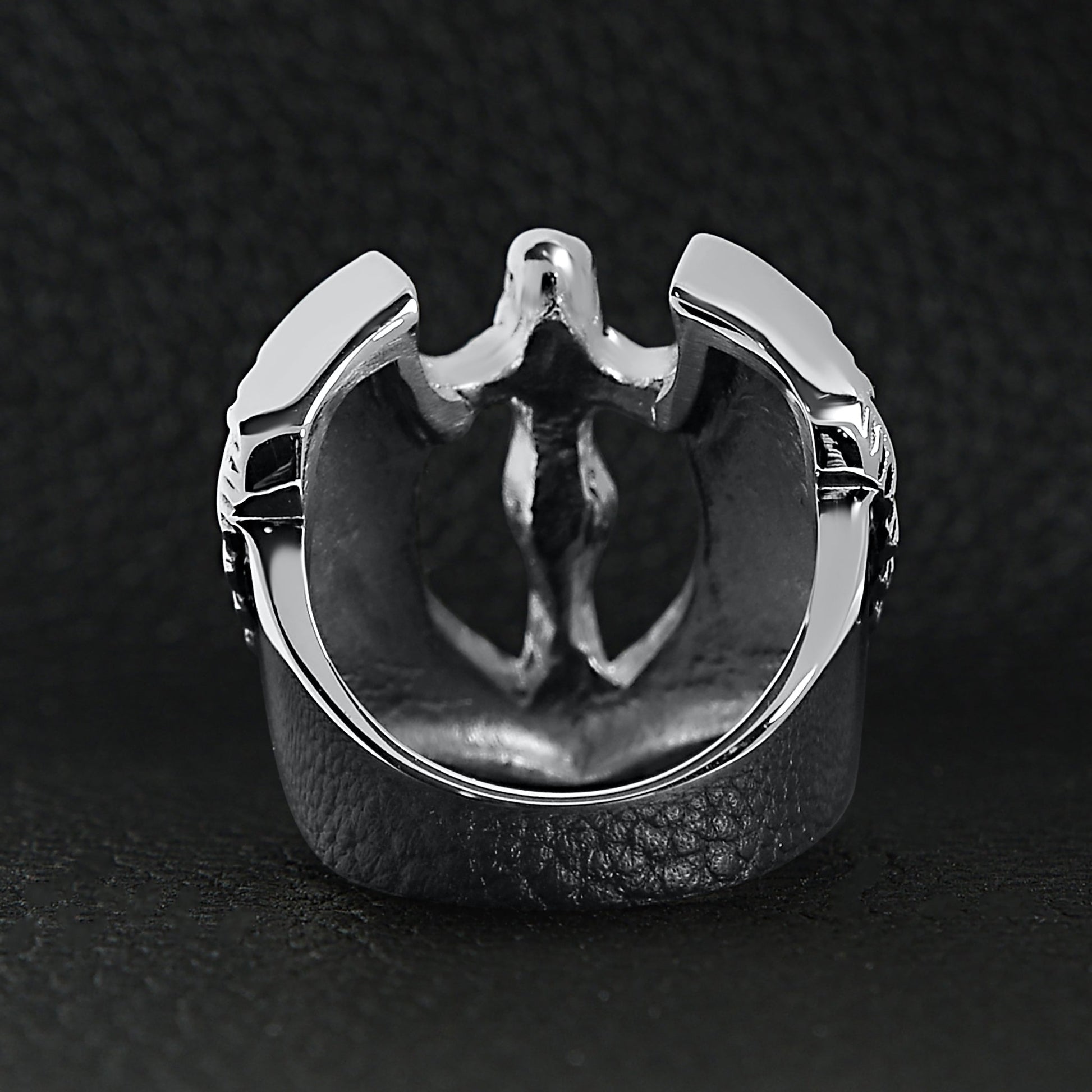 The Stainless Steel Guardian Angel Ring from our Biker Collection is custom molded and cast with a premium blend of surgical stainless steel that offers durability, even after exhaustive wear. Combined with a clean polished finish, the Stainless Steel Guardian Angel Ring is a great everyday statement ring that can be worn in water or while you sweat without worry.