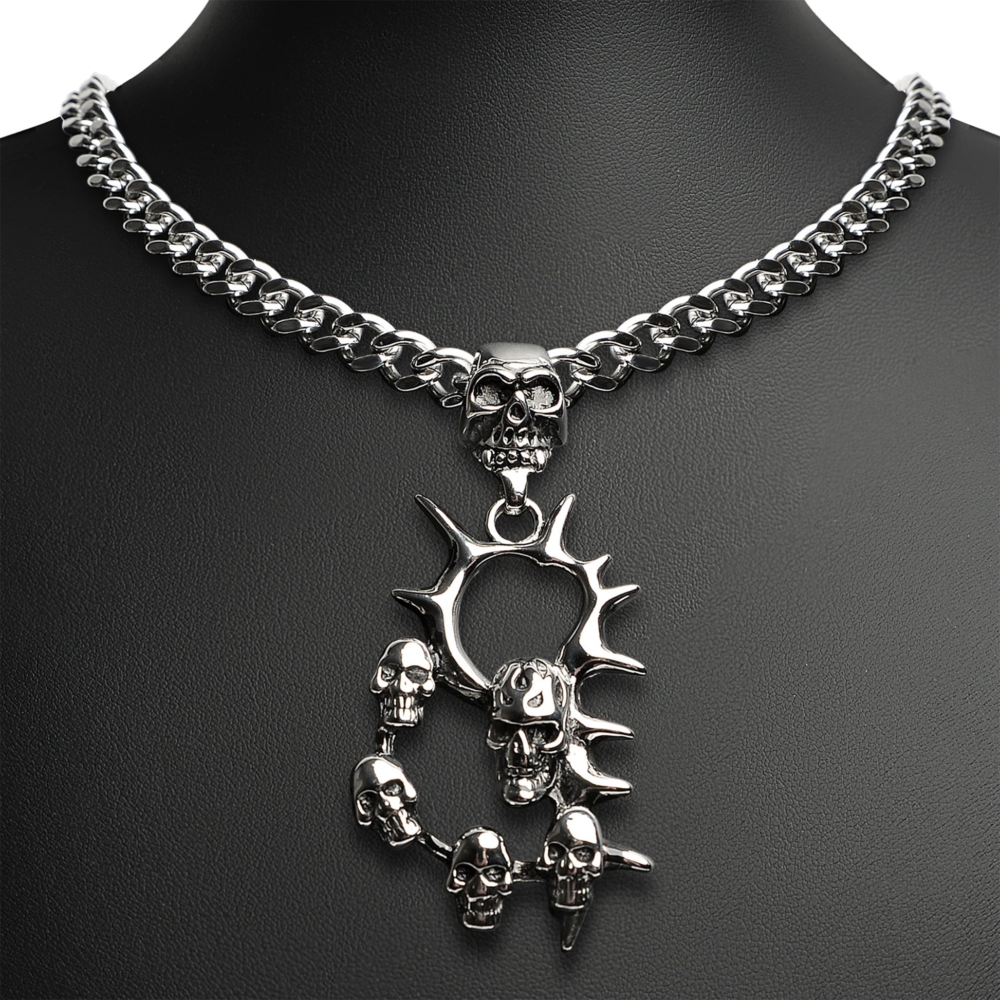 Description: Stainless Steel Multi Skull Spike Curb Chain Necklace