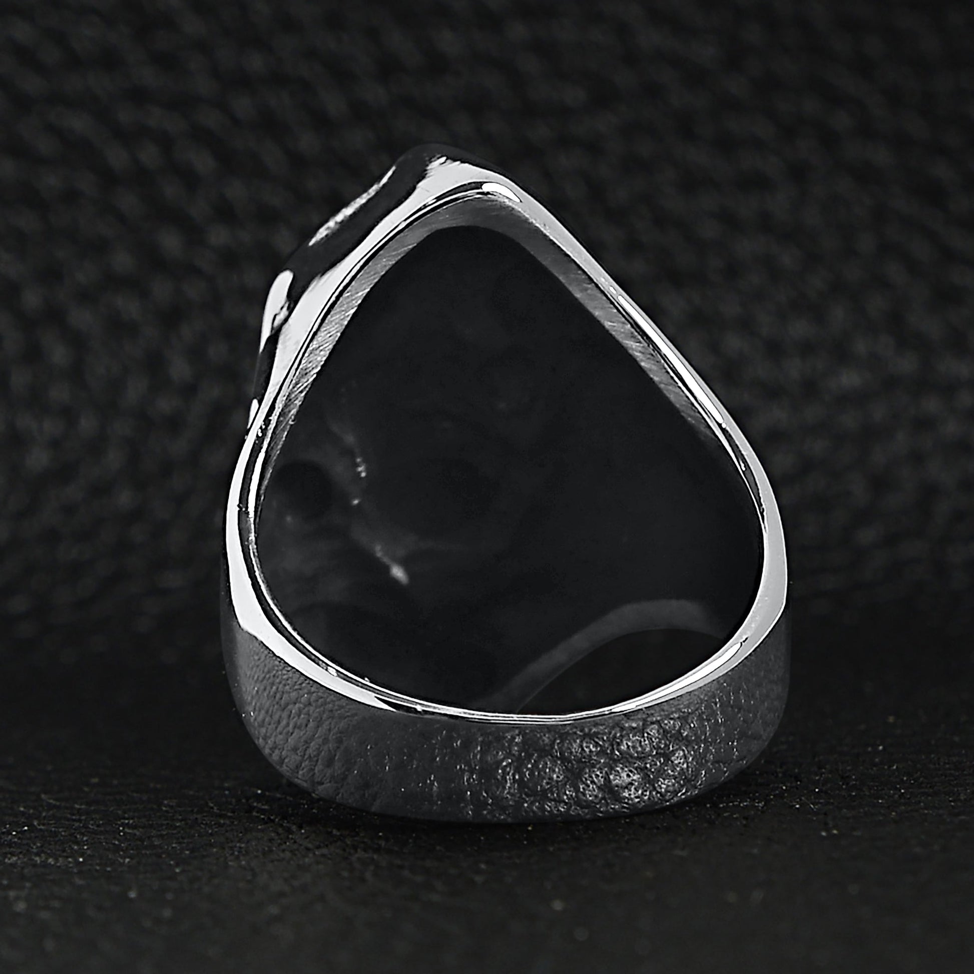 The Stainless Steel Red CZ Eyed Grim Reaper Ring from our Bones Collection is custom molded and cast with a premium blend of surgical stainless steel that offers enhanced durability, even after exhaustive wear. Combined with a clean polished finish, the Stainless Steel Red CZ Eyed Grim Reaper Ring works great as an everyday statement ring that can be worn in water or while you sweat without worry.