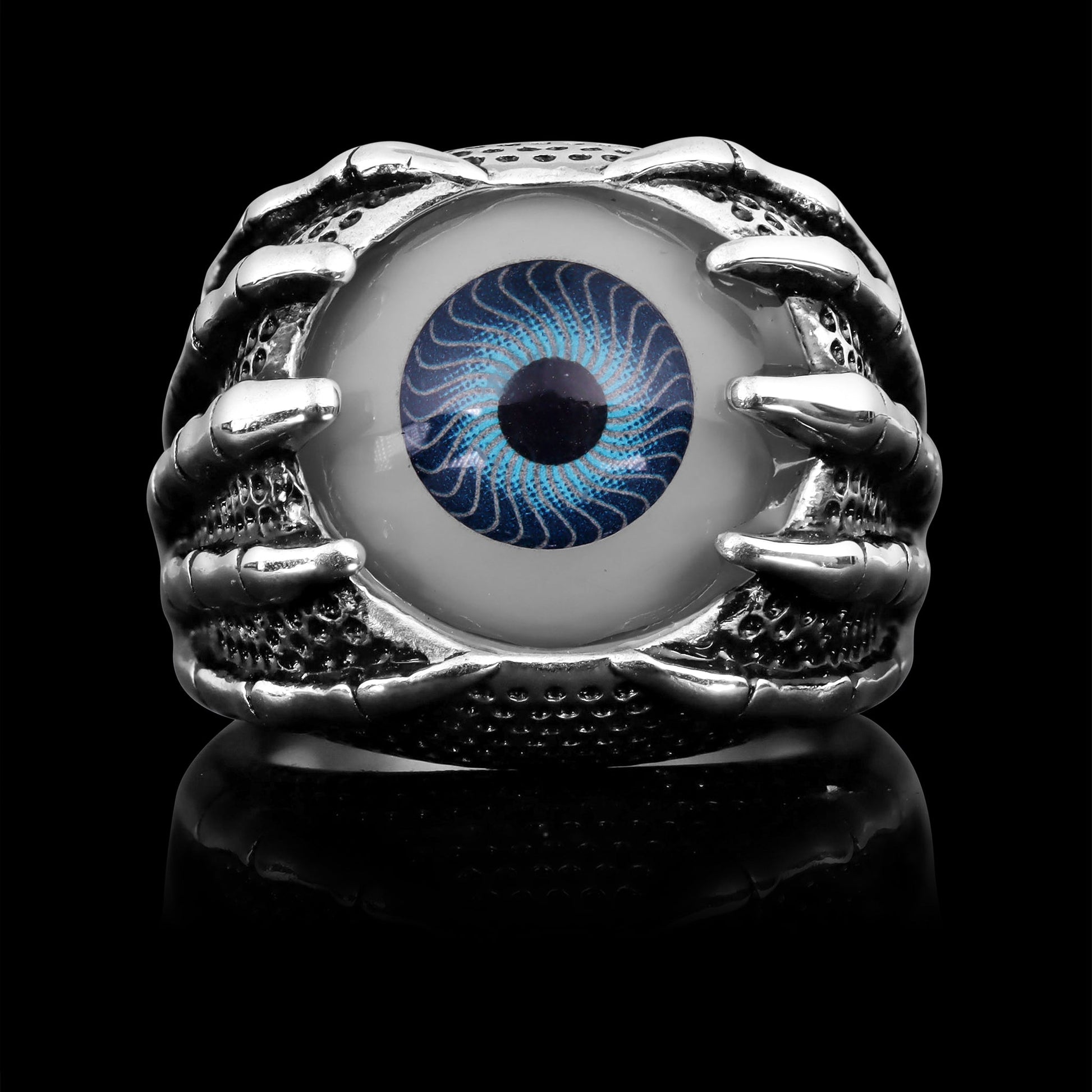 Description: If you're looking for a unique and EYE-catching ring, look no further than the Stainless Steel Skeleton Hands Holding Blue Eyeball Ring! The blue eyeball in the center of the ring is set in a realistic-looking socket, making it appear as though the skeleton hand is holding it in place. The attention to detail on this ring is truly amazing. It is polished to the best quality which makes it smooth and does not irritate the skin.