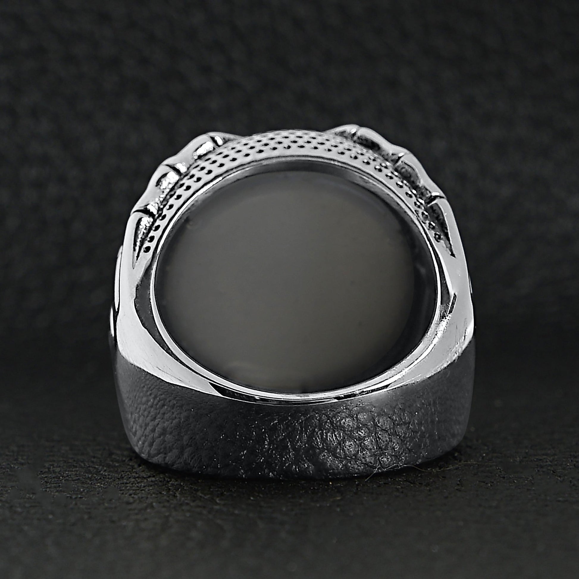 Stainless Steel Skeleton Hands Holding Blue Eyeball Ring