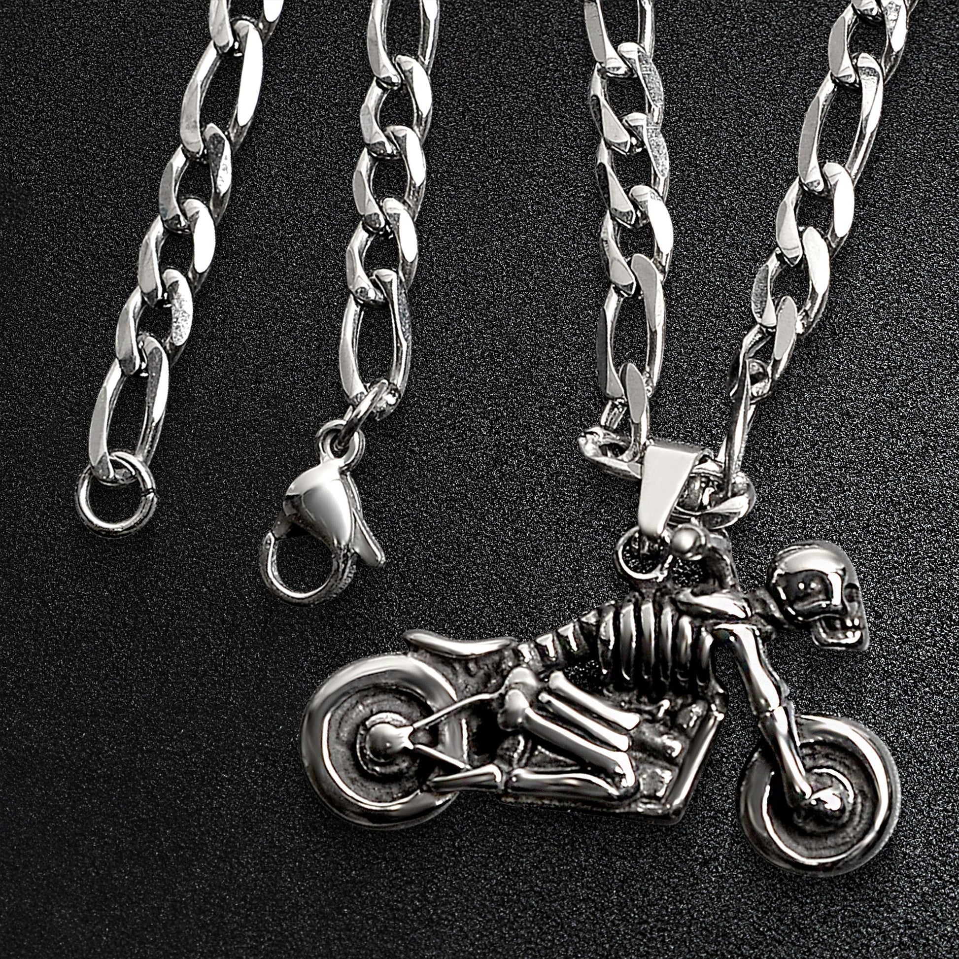 Description: Stainless Steel Skeleton Motorcycle Figaro Chain Necklace