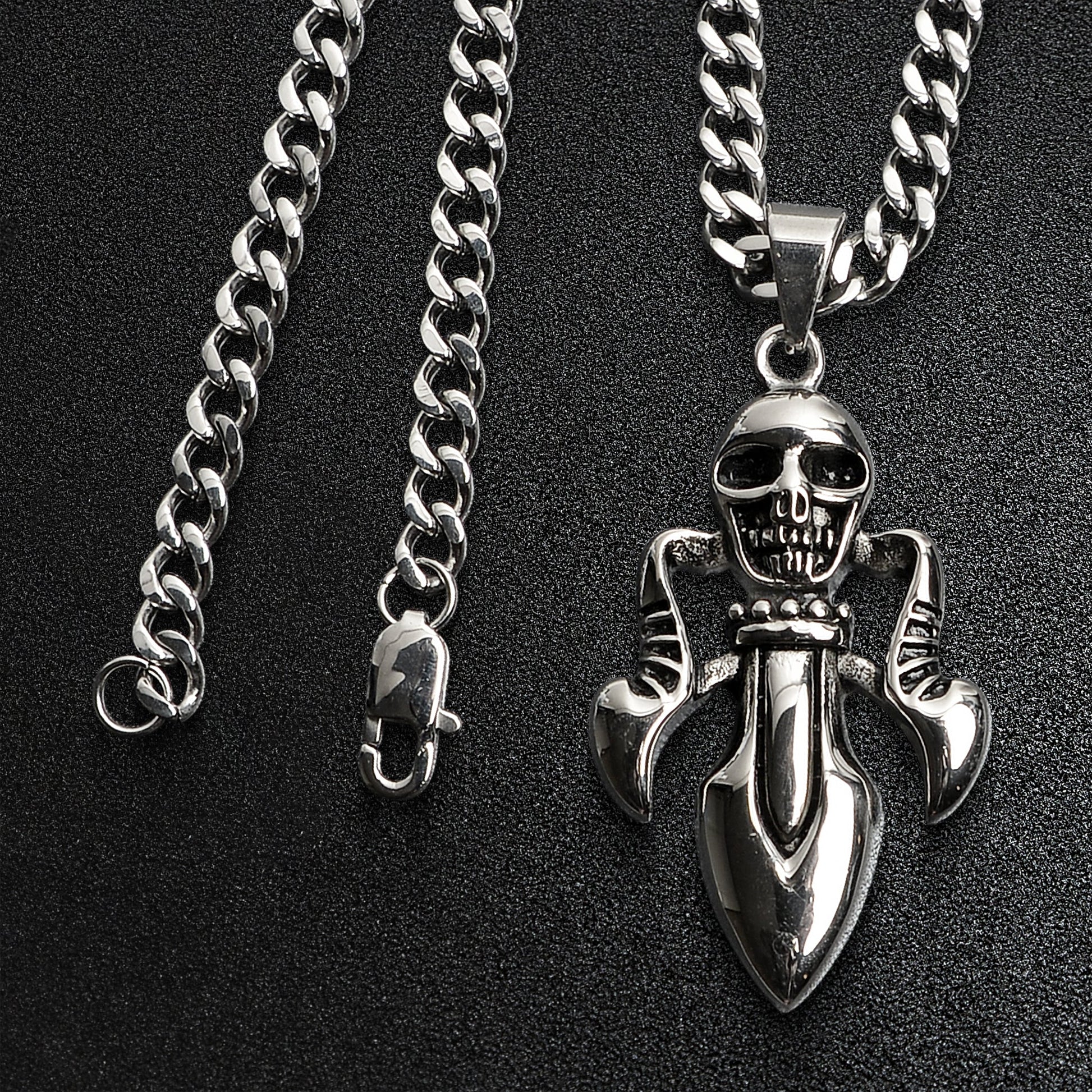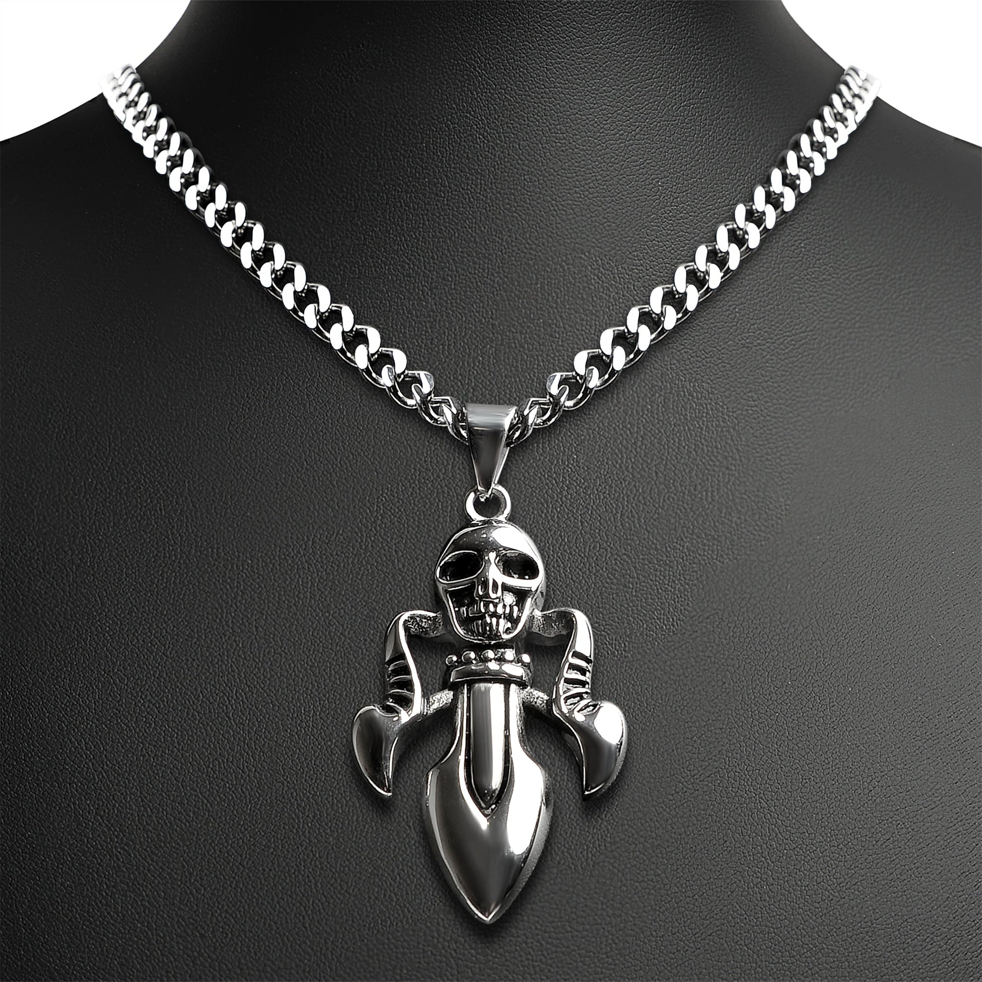 Description: Stainless Steel Skull And Dagger Curb Chain Necklace