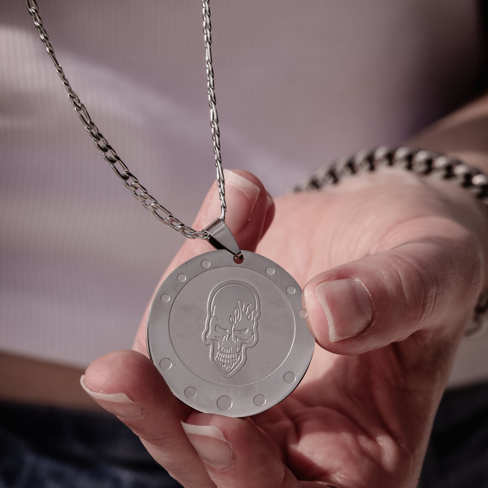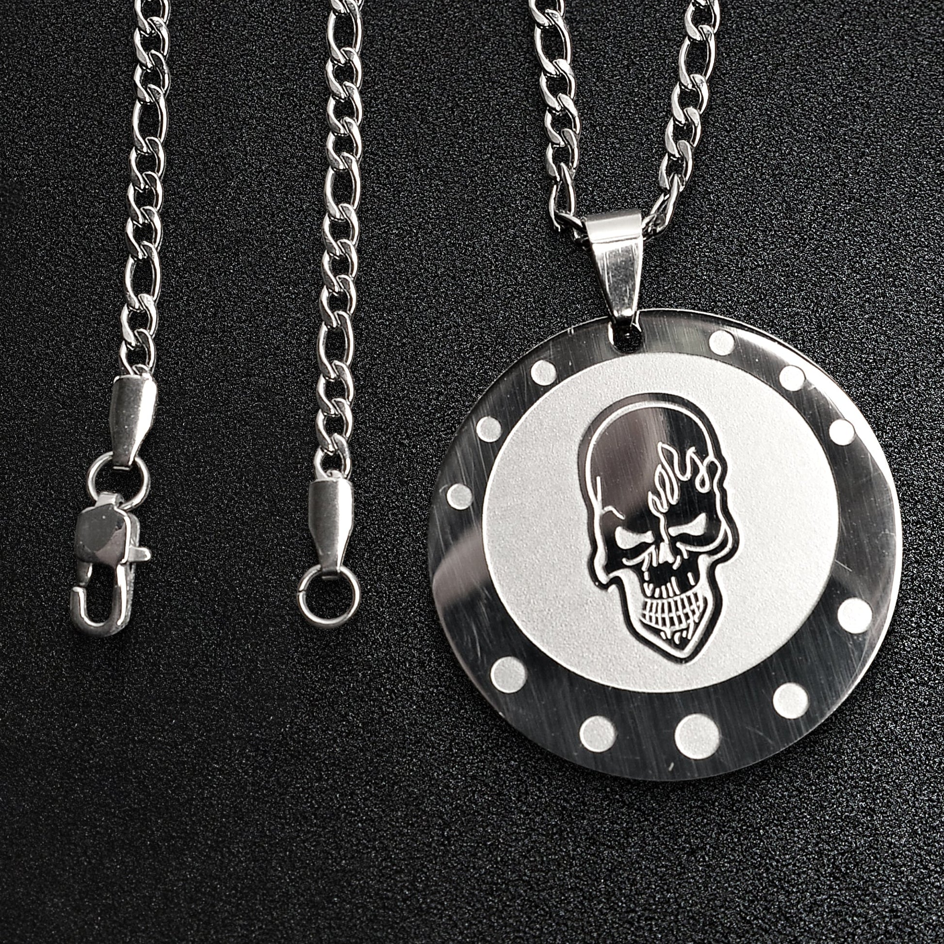 Stainless Steel Skull Shield Figaro Chain Necklace